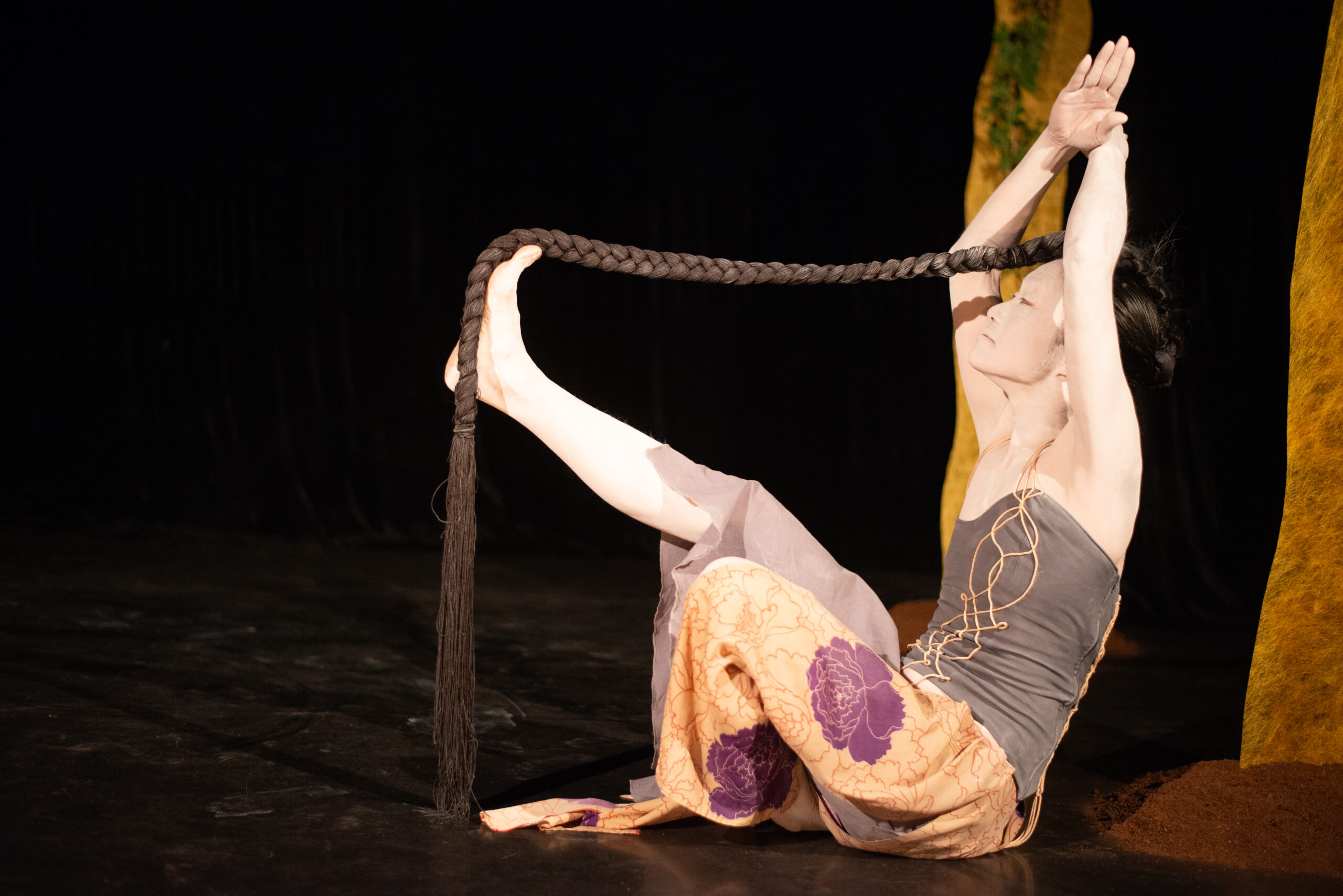 Deux ans plus tard, elle reprend cette création interrompue avec une pièce courte proposée en jardins, en juin 2022, lors d’un « safari chorégraphique », à Boursay (41), et en octobre 2023 lors d’une exposition-performance « Japon illuminé », à St Barthelemy Lestra (42).